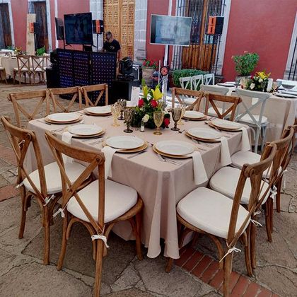 Calidad y Profesionalismo: Utilizan ingredientes frescos de alta calidad para su servicio de catering gourmet, y su inventario de mobiliario se mantiene en perfectas condiciones, asegurando un evento impecable.